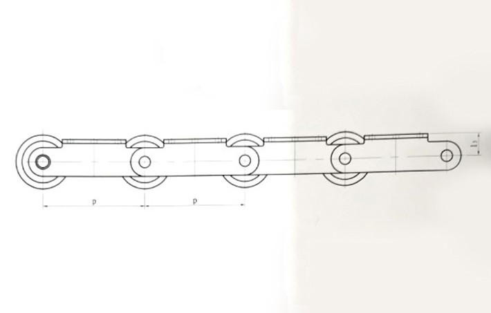 平板輸送機的鏈條,由帶K型附件的滾子套筒鏈和方管鋼組成,該鏈條在負(fù)載運行時,滾子和鏈條導(dǎo)軌之間是滾動兼滑動的摩擦運動形式。